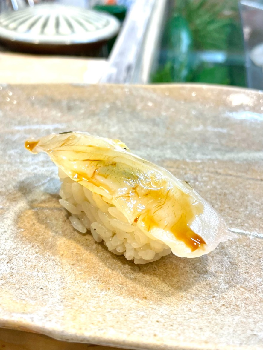 地元より猛者エビ、甘エビ、天然カンパチ、アラ、シロハタ、ノドグロ。また岩手県釜石からホタテ貝、島根県浜田市よりどんちち鰺。これからが旬のコハダが佐賀から入荷しました。 この時期新子のように柔らかく身がしっとりと格別だと思います!